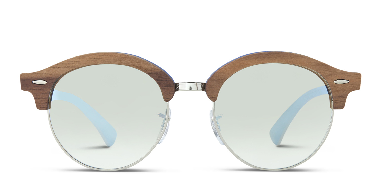 The Ray-Ban 4246M is a clever take on the iconic Clubmaster model. Round and semi-rimless, it features a top part and arms crafted in wood with an elegant metal bridge and an accent blue coloring on the inside. The Ray-Ban 4246M Brown w/Silver (Non-Rx-able) can be found hereThe Ray-Ban 4246M Brown w/Silver (Non-Rx-able) can be found here: https://www.glassesusa.com/brownsilver-medium/ray-ban-4246m/46-m7788.html